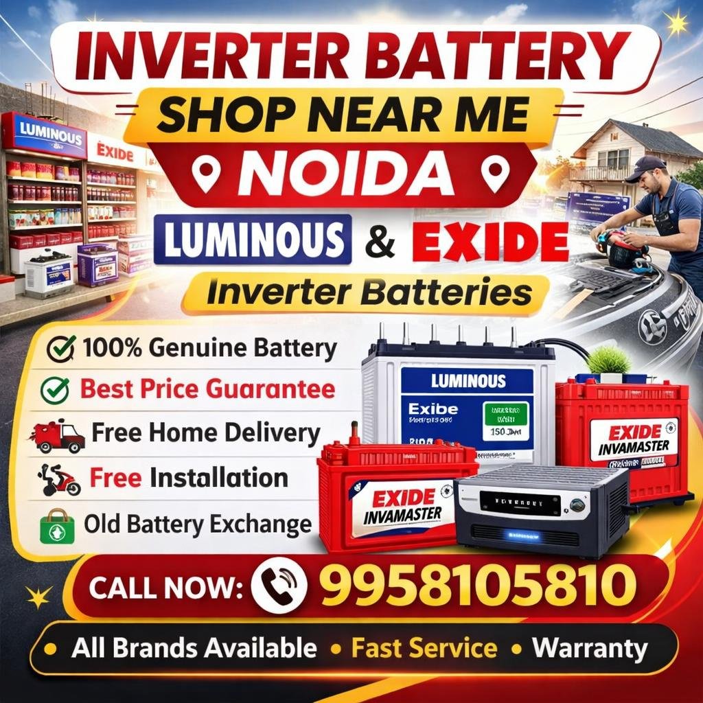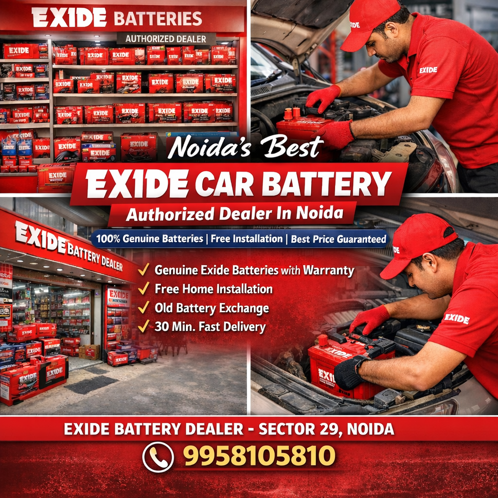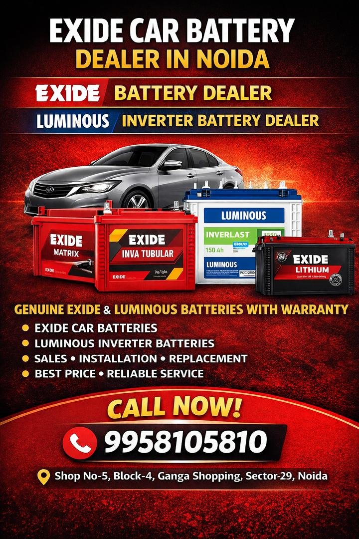 Area Your looking Authorised Exide Car Battery Dealer in Noida Nearby, We are a trusted Exide and Luminous battery dealer in Sector 29 Noida, offering genuine car batteries, inverter batteries, tubular batteries and UPS battery solutions at the best price. We provide fast car battery replacement, inverter battery installation and battery exchange offers with doorstep delivery in Noida, Greater Noida and nearby areas. If you are searching for Exide car battery dealer near me or Luminous inverter battery shop in Noida, quick service and expert support, Exide Car Battery Dealer, Luminous Inverter Battery Dealer Noida Nearby